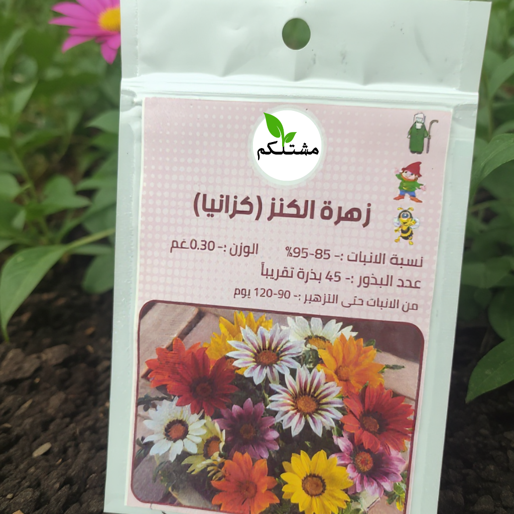ازرع كنزاً حقيقياً في حديقتك بأقل مجهود. اطلب بذور زهرة الكنز (الغازانيا) الآن من "مشتلكم" واستمتع بسجادة من الألوان الزاهية!
